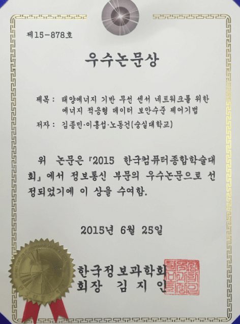 2015년 한국컴퓨터종합학술대회(Korea Computer Congress) 우수논문상 수상